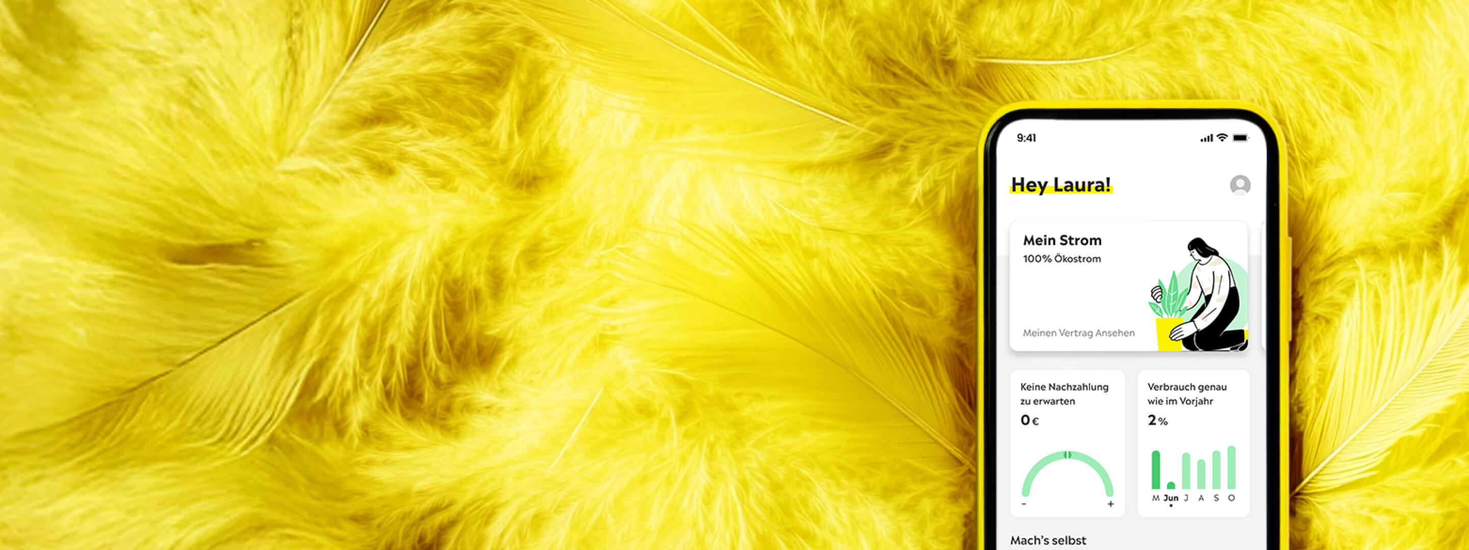 Unser Stromtarif passt sich dir an, nicht umgekehrt. Wähl deine Vertragslaufzeit mit Preisgarantie so wie du es brauchst. Das geht easy online. Mit der Yello App behältst du Stromverbrauch und Kosten im Blick.